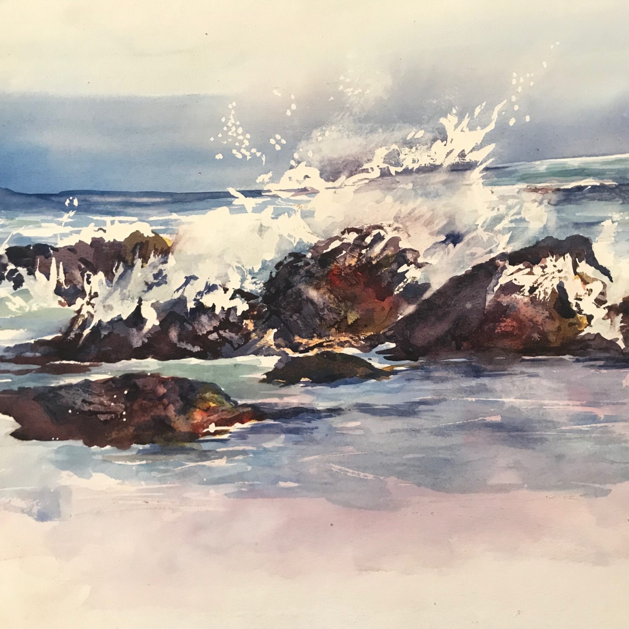 In March’s Art Spark lesson, participants will create a crashing seascape that will focus on three watercolor techniques: dry-on-dry painting, masking, and scraping.