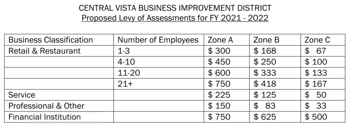 On February 23, 2021 at 5:30 p.m. the Vista City Council will vote on the intent to levy the Central Vista Business Improvement District.