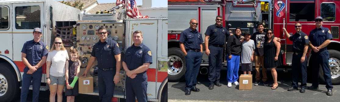 A few weeks ago, Escondido Firefighters volunteered their off-duty time to collect donations for the San Diego County Burn Institute at two intersections in Escondido. The generous donations from our community totaled $10,500. A signature Burn Institute program that is supported by donations is Camp Beyond the Scars, an annual camp for young burn survivors. This year, part of the camp will be virtual, so each camper receives a box full of supplies and treats. To make this year a little extra special, Escondido fire and police delivered Joshua and Peter’s boxes in person with lights and sirens The Burn Institute always welcomes donations to support burn victims in San Diego and Imperial Valley counties: https://burninstitute.org/donate