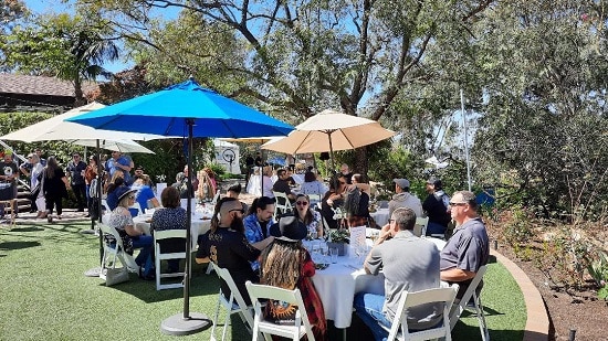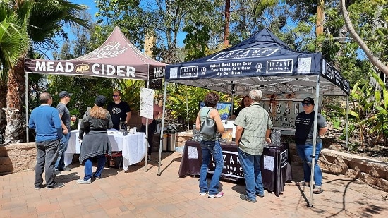With the San Diego State Aztecs NCAA semi-final basketball game set to begin later in the afternoon last Saturday, hundreds and hundreds of people once again enjoyed mead, wine and beer tasting, many in Aztec gear, as they wandered the pathways mid-day in the Alta Vista Gardens annual event, “Meading at the Garden”, a perfect April Fool’s Day celebration. Proceeds from the ticket sales go to help Alta Vista Botanical Gardens pay for improvements, maintenance, education and natural resources like water and power. Each guest with a ticket received admission, a taster glass and two drink tickets, additional tickets were available for purchase.