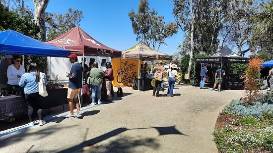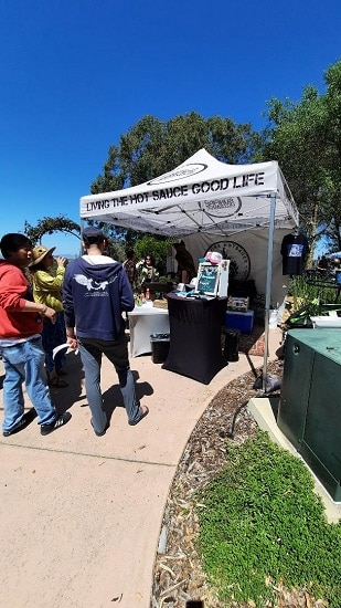 A number of businesses, other than the drinking establishments, were also in attendance. A mother/daughter team offered some great looking cookies with unique designs, called The Cookie Duo. Dragon Breath Jerky, Partypop Popcorn, So Rich Chocolates also handed out samples and had products on sale. One popular stopping point for those in attendance was at the Sunfire Hot Sauce tent where Sye Samad gave out samples of his hot sauce he makes at his home in Oceanside. Another popular tent to sample meads and brew was at the North County Homebrewers Association where they were serving at least 14 different samples of meads and beers from some of their members. The Temecula Valley Honey Company was offering honey tastings throughout the day and The San Diego Beekeepers Society had members in attendance to explain the beekeeping business including a live beehive to look at.