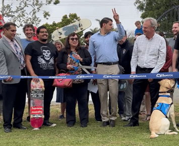 The Mayor and City Councilmembers cut the celebratory ribbon, and the Mayor received a skate deck signed by skaters and the American Ramp Company staff that designed and constructed the skate spot. The Offices of Congressman Mike Levin, State Senator Catherine Blakespear, and Assembly Member Laurie Davies had representatives in attendance, along with County Supervisor Jim Desmond who joined the ceremony.
