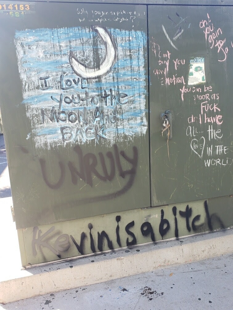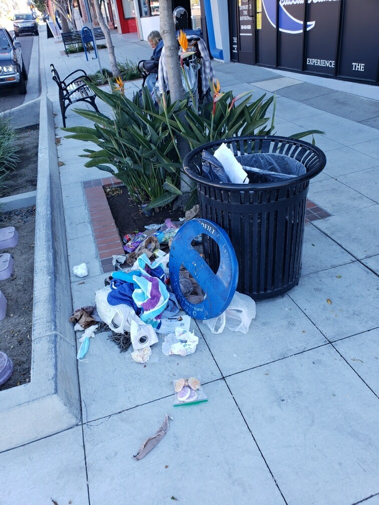 Sites specifically mentioned โ or shown – for rubbish or vagrant activity, even human waste โ or the malicious placement of 1,000 stickers – were the Junior Seau Amphitheatre where โpeople go down at night and leave their trashโ, the Pier View Way Underpass, the Bank of America, Oceanside Museum of Art and St. Mary’s Church.