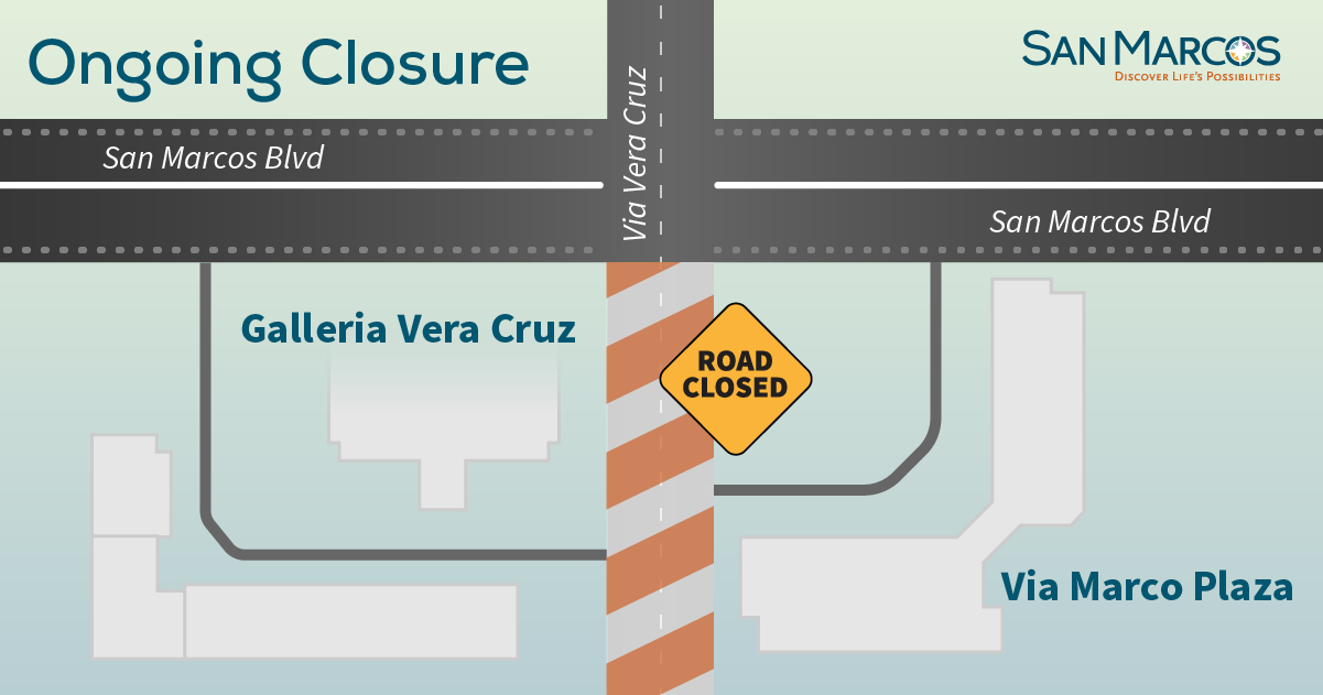 Via Vera Cruz closure starts Thursday, Sept. 21: The project team has confirmed the full closure of Via Vera Cruz will begin on Thursday, Sept. 21. The closure is expected to last a few months. Once complete, Via Vera Cruz and the bridge will reopen at the same time to through traffic.