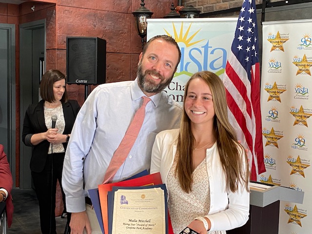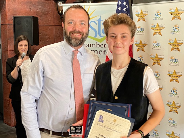 The Rising Stars program is a tremendous program held each month with an end of school year awards program. These high school students have gone above and beyond in assisting in a variety of organizations in their schools, volunteering in school and community programs, helping wherever they are needed while preparing themselves for incredible futures in programs of higher learning. If you are interested in helping with the Rising Stars program, contact the Vista Chamber of Commerce at ceo@vistachamber.org.