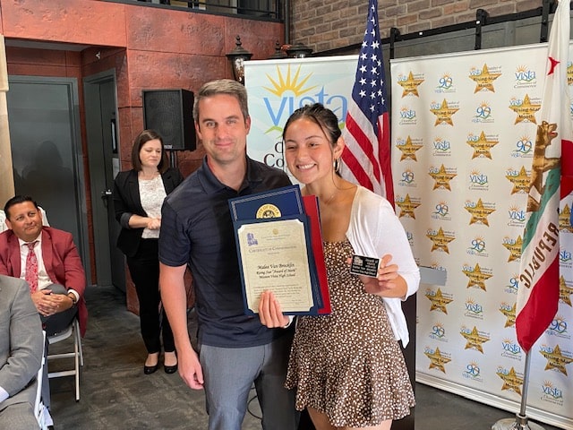 Also in attendance for the awarding of these scholarships were Vista City Council Members Corinna Contreras and Katie Melendez, Vista Unified School District Board President Cipriano Vargas, Adrienne Cisneros-Selekman from County Supervisor Jim Desmond’s Office, Suleyma Balderas representing Assemblymember Tash Boerner-Horvath’s Office, Matt Stockton representing Assemblymember Marie Waldron’s Office, Max Wernher representing State Senator Patricia Bates Office and Jessica Ramirez representing U.S. Congressman Mike Levin’s Office.