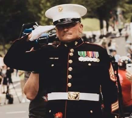 Staff Sergeant Tim Chambers, better known as “The Saluting Marine”, is the uniformed veteran who stands and salutes in the middle of the motorcycle traffic during the Rolling Thunder demonstrations in Washington D.C., every Sunday before Memorial Day since 2001. This year, Rolling Thunder has been cancelled due to Covid-19. However, Sergeant Chambers will be saluting in our Nations Capitol to bring awareness to Veteran suicide and POW/MIA’s.